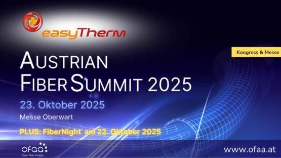 Am 23. Oktober 2025 verwandelt sich die Messe Oberwart in den zentralen Treffpunkt der österreichischen Glasfaserbranche. Als größte Glasfaserveranstaltung des Landes bringt das Summit führende Entscheidungsträger, Experten und Visionäre aus ganz Europa zusammen. Im Fokus stehen Innovationen, nachhaltige Infrastrukturen und die Gestaltung unserer digitalen Zukunft. Freuen Sie sich auf inspirierende Vorträge, praxisnahe Best Practices und intensives Networking – inklusive der stimmungsvollen FiberNight am Vorabend.
